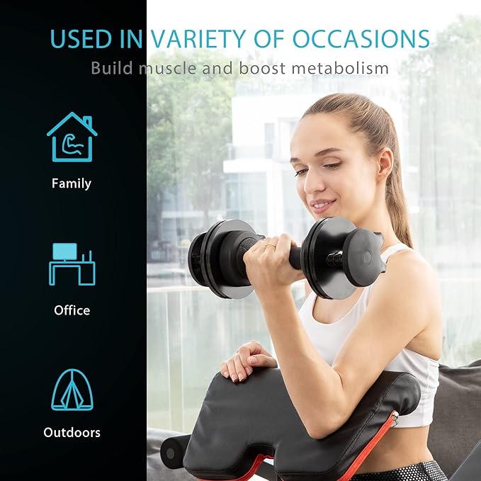 • SPACE-SAVING - This adjustable dumbbell is more compact than ordinary dumbbells, occupies less space, and is easier to use and store; 1 set of dumbbells is equivalent to 12 dumbbells; You don’t need to worry about having too many dumbbells will make your home messy, this dumbbell can keep your home well organized