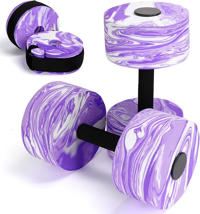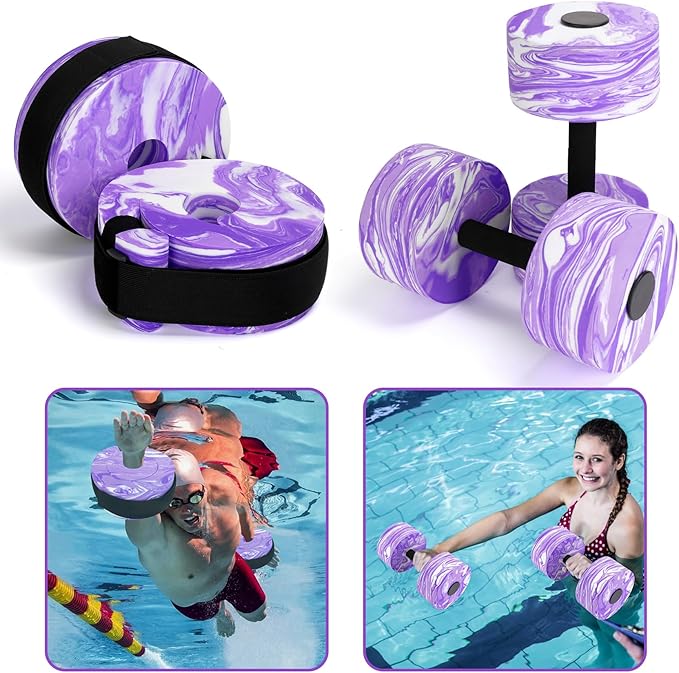 • High-Density EVA-Foam Aquatic Cuffs Dumbbell Set-Made of premium High Density EVA foam, the water dumbbells are chlorine resistant and dry quickly between use. They are long lasting and will not fall apart. It is designed to be durable, ensuring that it will last you a long time and provide you with exceptional performance every time you use it.