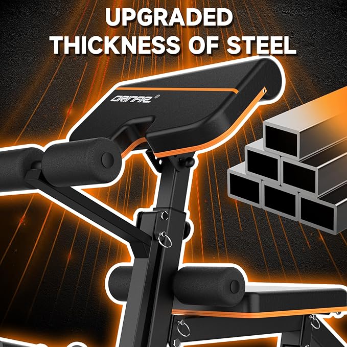 • Strong & Stable Structure: Orinar uses higher quality, thicker steel with more advanced welding techniques to make the weight bench stronger and more stable.Real Weight Capacity: 880 lbs, leg support : 80 lbs.
