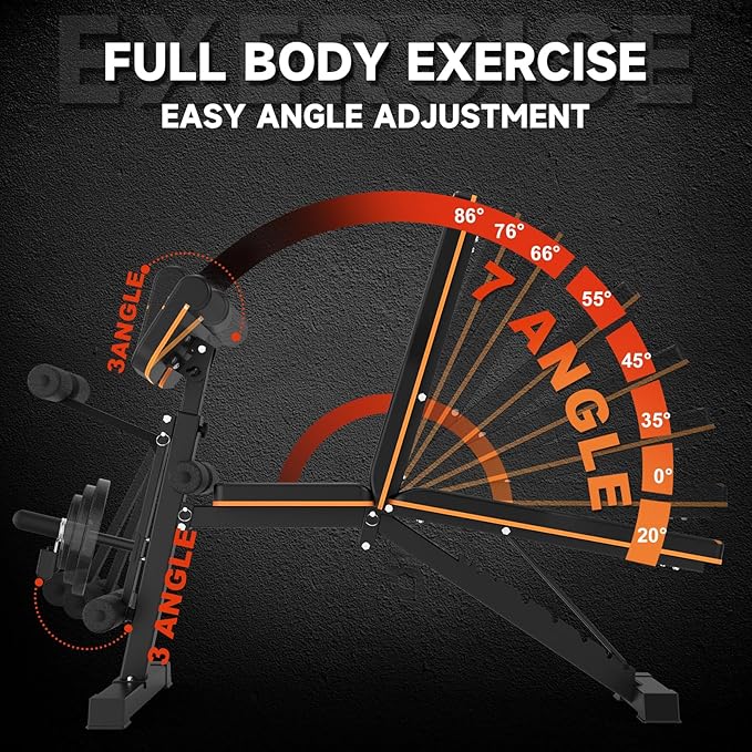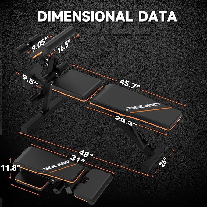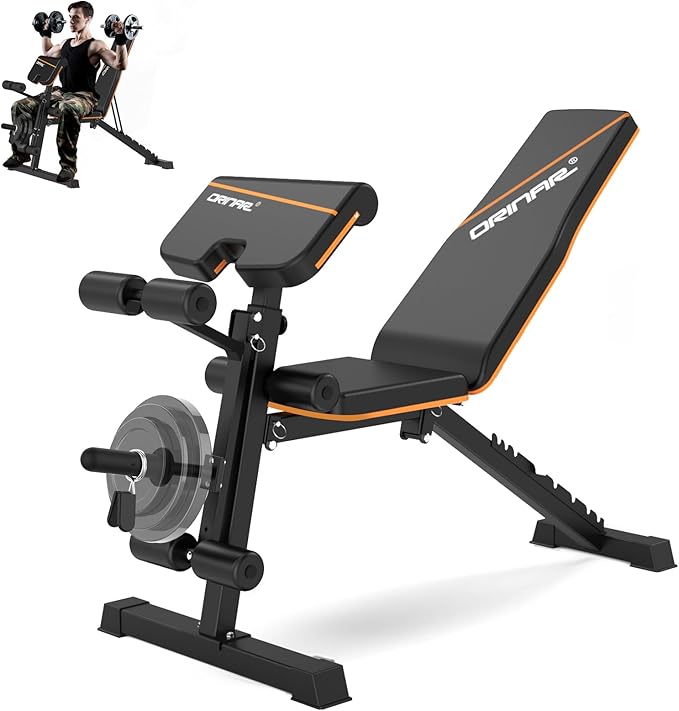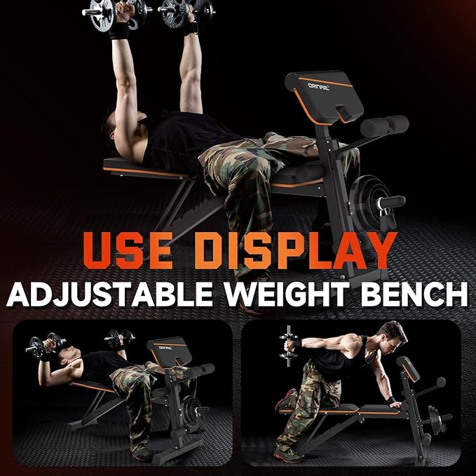 - Multi-functional & Adjustable: Our incline bench has 3 adjustable parts-backrest (7 angles), leg extension (3 angles) & preacher pad (3 angles), which can meet the need for a full body workout.All you need to have is a Orinar incline bench to fulfill the need to exercise your chest, shoulders, hips, abdominal and back muscles.