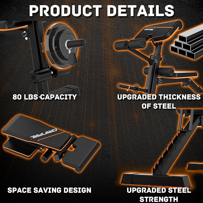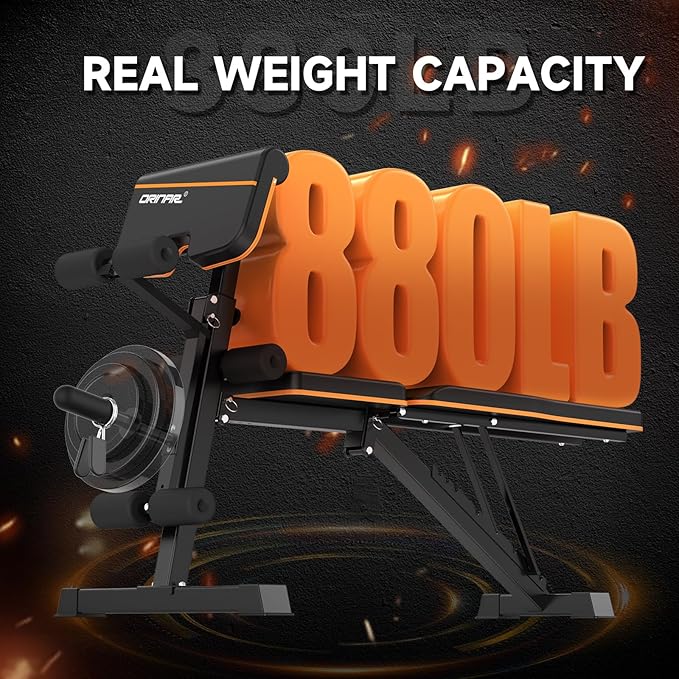 - Strong & Stable Structure: Orinar uses higher quality, thicker steel with more advanced welding techniques to make the weight bench stronger and more stable.Real Weight Capacity: 880 lbs, leg support : 80 lbs.