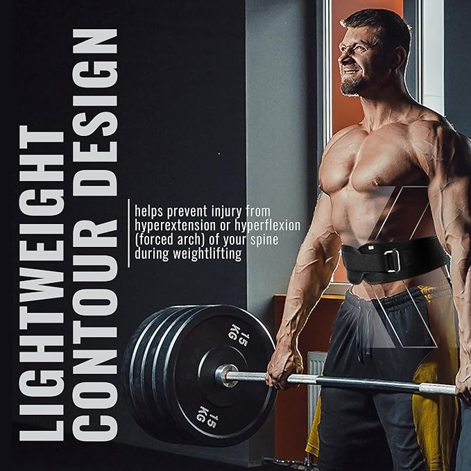 • DESIGNED FOR OPTIMAL COMFORT AND FUNCTION: With its lightweight contoured design, our weightlifting belt helps prevent injury from hyperextension or hyperflexion (forced arch) of your spine during weightlifting. By offering support to your abdominal wall and your lumbar vertebrae, this lifting belt promotes safe lifting technique for Back Squats, Power Cleans, Deadlifts, Clean and Jerks, Overhead Squats and even heavy lifting at work or at home.