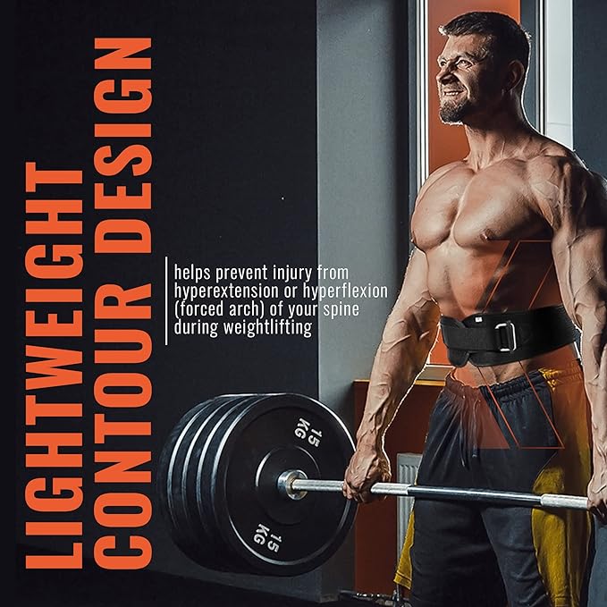 • DESIGNED FOR OPTIMAL COMFORT AND FUNCTION: With its lightweight contoured design, our weightlifting belt helps prevent injury from hyperextension or hyperflexion (forced arch) of your spine during weightlifting. By offering support to your abdominal wall and your lumbar vertebrae, this lifting belt promotes safe lifting technique for Back Squats, Power Cleans, Deadlifts, Clean and Jerks, Overhead Squats and even heavy lifting at work or at home.