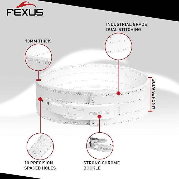 - ✅ Upgraded Steel Lever Buckle: Powerlifting belt’s quick lever closure system is one of the best. It is very easy and fast; belt can be loosened in less than a second. Our Power belt allows lifters to wear a belt up to 4" tighter than the traditional weightlifting belts. Fexus weight lifting lever belt designed to increase strength by increasing the intra-abdominal pressure