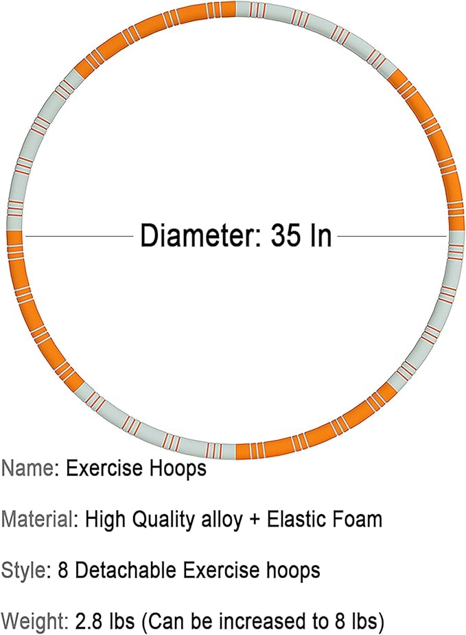 - ★【Adjustable Weight】Our Fitness hoops about 2.8 pounds and diameter 35 inches. The weight of this exercise hoop can be adjusted freely. Weighted objects such as rice grains,sand, small balls,etc.Can be added inside the steel pipe,and the upper weight of the weight is determined by the load.