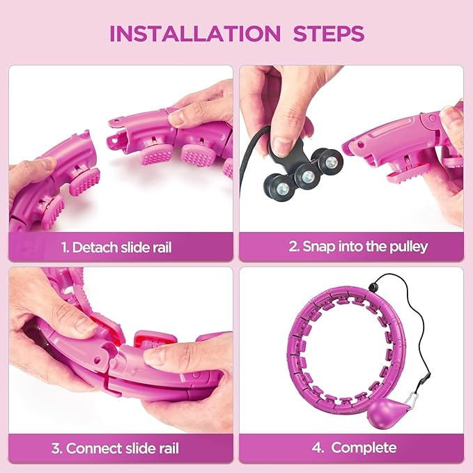 - 💓【Quiet Rolling & Never Falls】-- 3 groups of upgraded 360-degree rotating silent rollers can rotate evenly and flexibly, making the noise lower and the rotation more stable. This newly smart hooola hoop is so simple to use. Compared with traditional weighted hoops, it will not fall down while using. Everyone should have a piece of practical exercising equipment like this. Even if you are a beginner, you can also enjoy this sport.