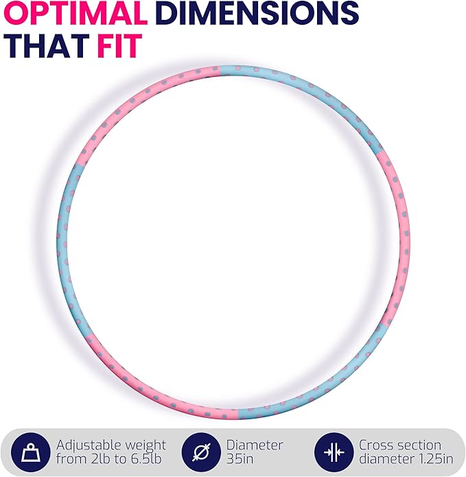 - Quality hula hoop that works for you means no more sepnding extra money replacing plastic adult hula hoops with thin foam rubber full of cracks after 10 minutes of use! No more awful, painful bruises around the waist thanks to poor quality plastic not weighted hoop for adults which weight just under 1 kg! No more struggling while excercising with hula hoop weighted at home. We designed to fit nearly everybody, weighted hola-hoop - that will last for years with your fitness home equipment.