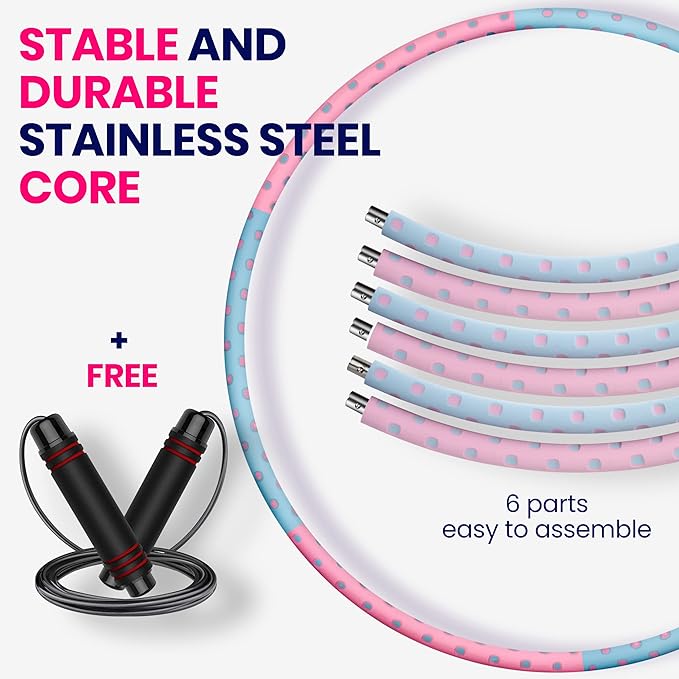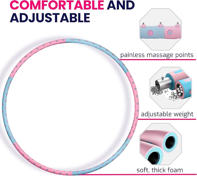 - Weighted Hula Hoop for Women - Unlike many other cheap, fragile, plastic not weight hula hoop that are very unstable, flimsy with ripped foam or break after a few uses, our premium stainless steel hula hoops for adult and beginners is crafted with high-quality stainless steel tube covered with thick 2 layers skin friendly soft foam & is designed to last, so you won’t have to replace your hula hoops for adults in 2 weeks like with other plastic fitness hoola hoop.