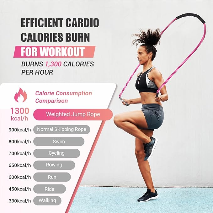 - [QUICK FITNESS GOALS] Scientifically proven, jumping for 10 minutes with our 1.25 lbs weighted jump rope for women is equivalent to jumping for 30 minutes with a regular jump rope, with double the weight and several times more fat burning, this 1.25 lbs weighted jump rope for women works your core muscles 10 times more effectively than a standard jump rope, ensuring you gain strength quickly with an effective heavy jump rope workout.