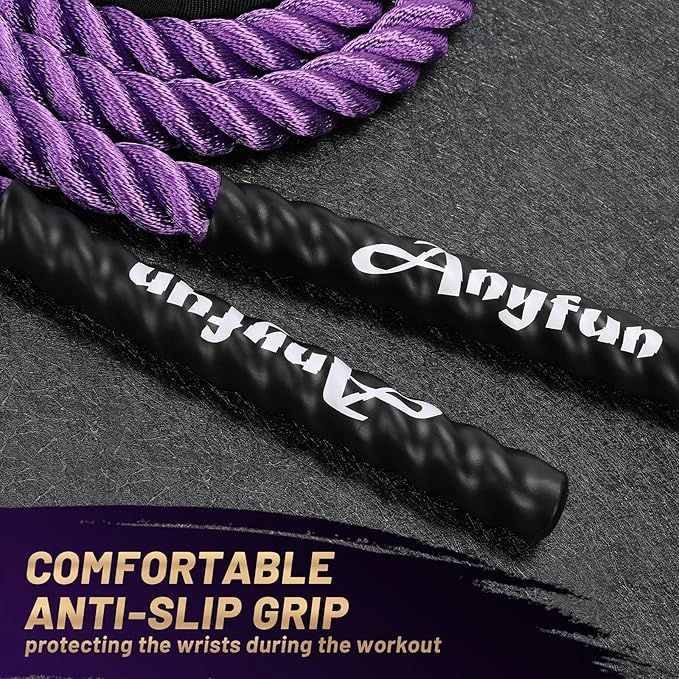 • Anyfun Weighted Jump Rope's ergonomic and non-slip handles provide a secure grip, reducing hand fatigue and allowing for prolonged use without discomfort. The versatility of this product makes it perfect for both indoor and outdoor workouts, this jump rope comes with a storage bag, giving you the freedom to incorporate it into your fitness routine wherever you choose to exercise.