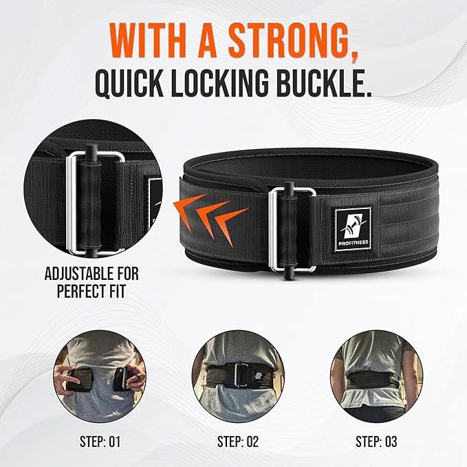 - ✅ WITH A STRONG, QUICK LOCKING BUCKLE - Don't risk your body and results to a subpar belt - trust the weight belts for lifting women and men use everyday to achieve their lifting goals! Weight belts for lifting men should promote confidence, and that's what ProFitness promotes every day.