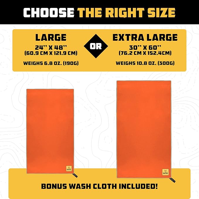 • Compact: Lightweight and convenient, our camp towel packs down super small into the included carrying bag and makes the perfect companion for your daily adventures. Our 2 pack towels include one full size towel and a wash cloth.