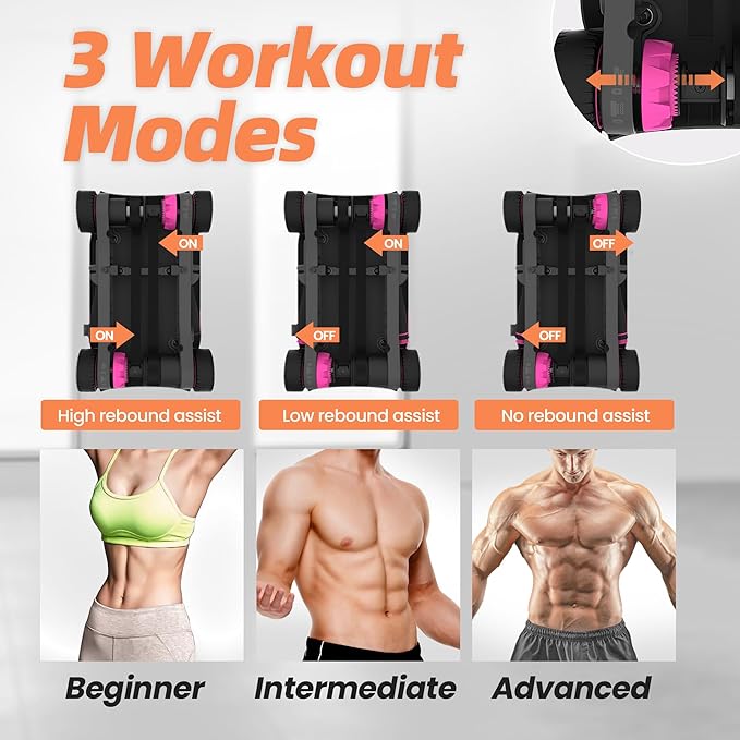 - 💪【3 Workout Modes Abdominal Exercises Wheel】: This abdominal wheel offers three workout modes suitable for people of all ages and fitness levels. You can adjust the resistance devices on both sides for maximum rebound power, turn on one side for less rebound power, or turn off both sides for unassisted rebound exercises.