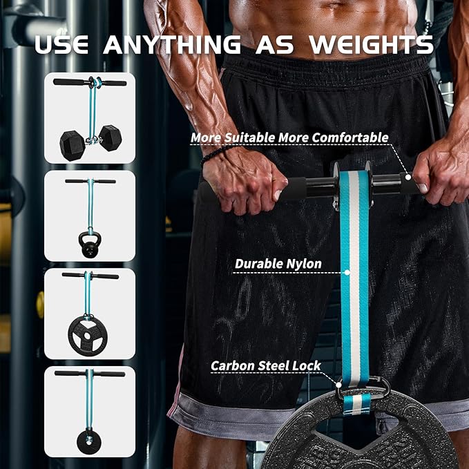 - Flexible Adjust Weight: The flexible and durable webbing strap allows you to use any heavy objects, including kettlebells, barbell tables, dumbbells, backpacks, etc.