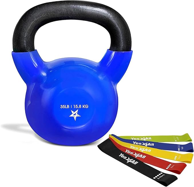 - 35 POUND KETTLEBELL & BANDS HIGH-QUALITY CAST IRON CONSTRUCTION: Built to last of solid cast iron kettlebell with no welds, weak spots, or seams. For dumbbells, slamball, training indoors & outdoor with ankle weights, weighted vest