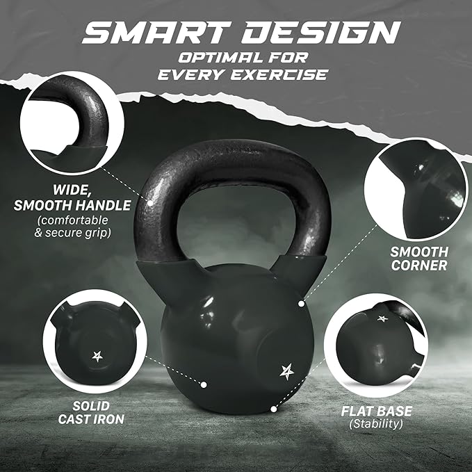 - STABLE FLAT BOTTOM DESIGN: Our kettlebells feature a flat base for stability, suitable for strength training kettlebells workouts such as renegade rows, handstands, mounted pistol squats and other exercises