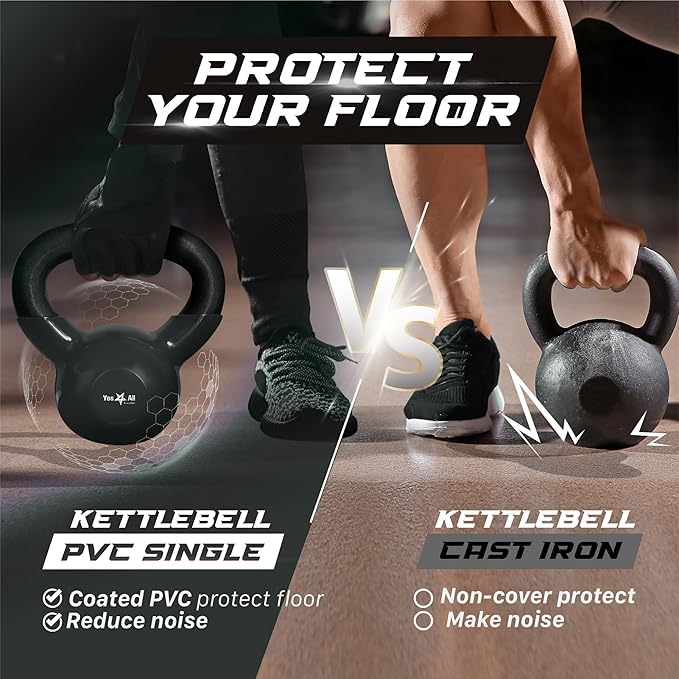 - DURABLE VINYL-COATED FINISH: Engineered to last, our kettlebell sets come with a durable vinyl finish that's easy to clean, prevent corrosion, reduce noise, protect floor