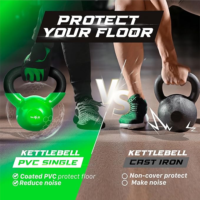 - DURABLE VINYL-COATED FINISH: Engineered to last, our kettlebell sets come with a durable vinyl finish that's easy to clean, prevent corrosion, reduce noise, protect floor