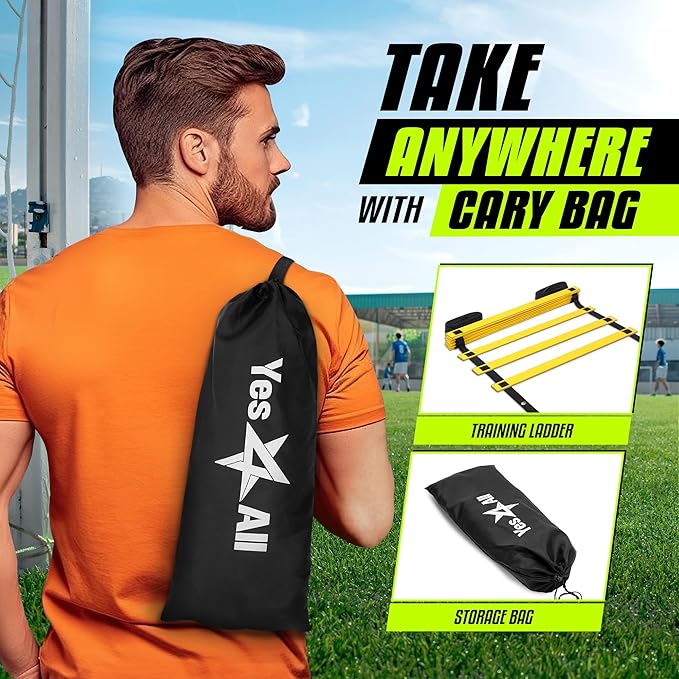 - BOOST FOOTWORK FOR VARIOUS TRAINING LEVEL: Exercise ladder is designed with 8, 12, and 20 rungs; Rung-to-rung distance can be adjusted up to 15 inches, making soccer equipment suitable for different skill sets levels; Instruction is included