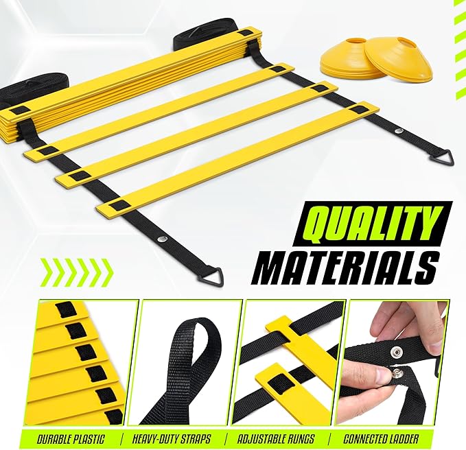 - DURABLE FOR LONG TERM USE: Fitness agility ladder features a durable nylon construction and sturdy plastic rungs, making football ladder lay well, perfect for a variety of agility training exercises