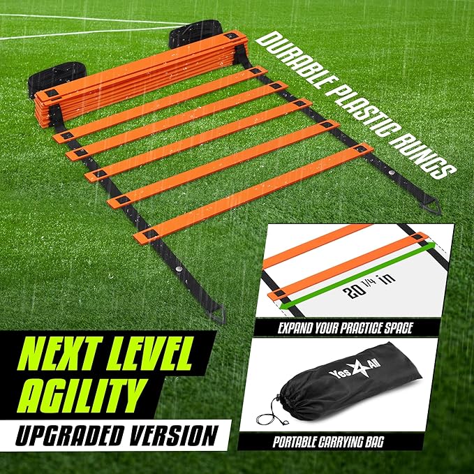 - DURABLE FOR LONG TERM USE: Fitness agility ladder features a durable nylon construction and sturdy plastic rungs, making football ladder lay well, perfect for a variety of agility training exercises