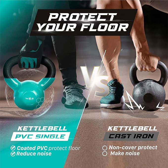 - DURABLE VINYL-COATED FINISH: Engineered to last, our kettlebell sets come with a durable vinyl finish that's easy to clean, prevent corrosion, reduce noise, protect floor