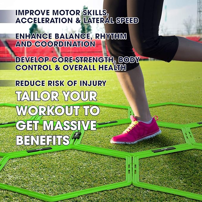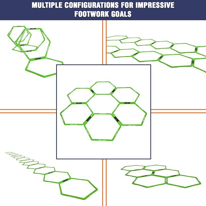 • SET OF 12 HEXAGON RINGS: This package includes 12 connected agility hexagon rings, each separate ring has a 19” diameter. Perfect agility training equipment for footwork training and agility training.