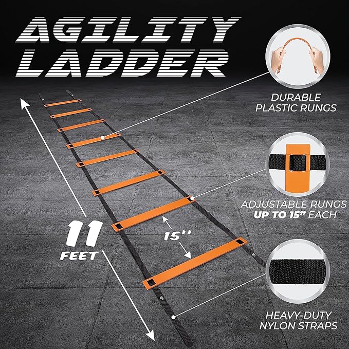 - HEAVY DUTY AGILITY LADDER: This agility ladder is designed for heavy-duty use, featuring a durable nylon construction and sturdy plastic rungs. It's perfect for a variety of training exercises, including speed and agility drills, soccer training, and footwork workouts.