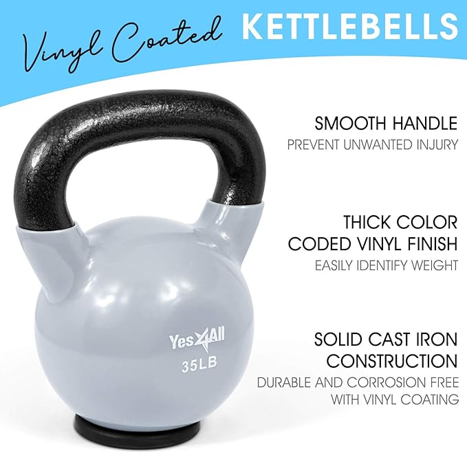 • HIGH DURABILITY: The PVC kettlebell weight set for women is encased in vinyl to overcome corrosion and roughness; Color-coded kettlebell set allows easy recognition and better aesthetic