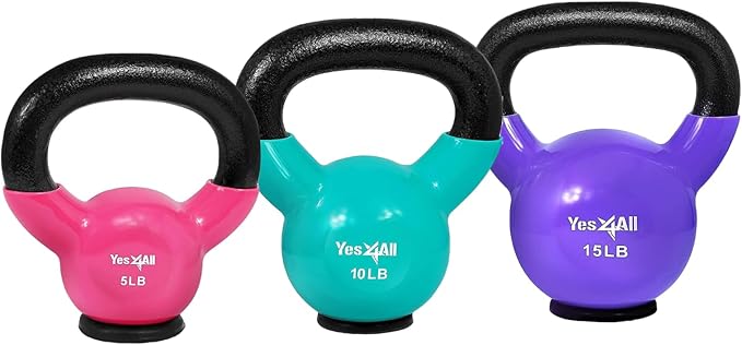 • HIGH QUALITY CONSTRUCTION: Vinyl coated kettlebell set made of cast iron for maximizing durability of the product, that protects floors, reduces noise, and prevents corrosion. No welds, weak spots, or seams.