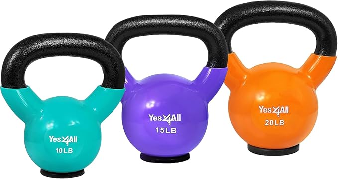 • HIGH QUALITY CONSTRUCTION: Vinyl coated kettlebell set made of cast iron for maximizing durability of the product, that protects floors, reduces noise, and prevents corrosion. No welds, weak spots, or seams.