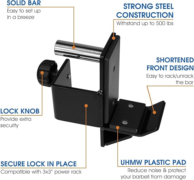 - UHMW PLASTIC PAD INCLUDED: The J-Hook is fully equipped with a thick padded rubber layer to reduce noise during your workout session and protect your barbell from damage