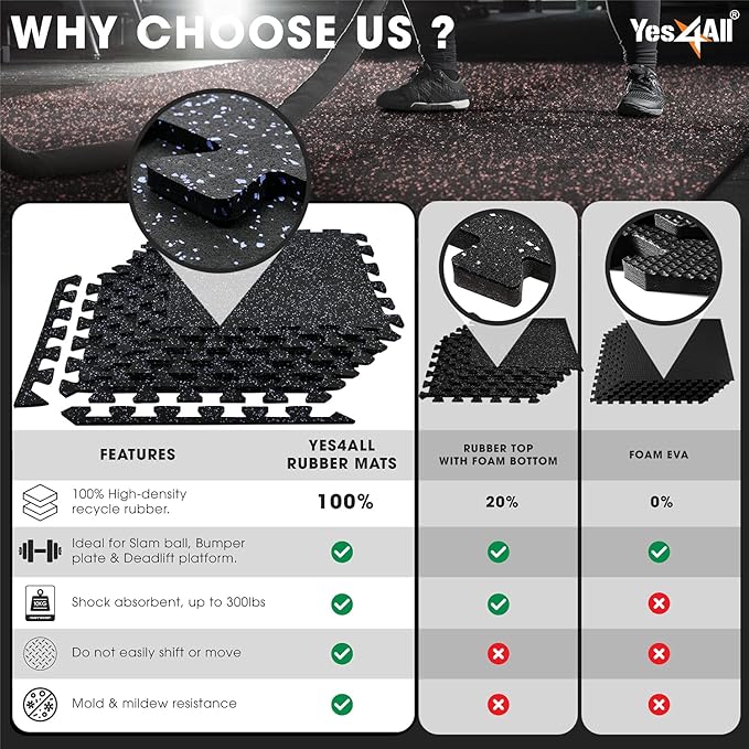 Yes4All Rubber Gym Flooring for Home Gym 0.56" Thick