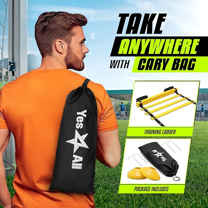Yes4All Speed Training Equipment Set: 15ft Agility Ladder 5 Agility 12 Disc