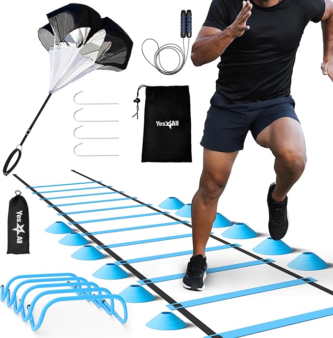 • BETTER ATHLETIC PERFORMANCE: Our agility ladder speed training equipment is comfort for athletes in a variety of sports, including soccer, football, basketball, hockey, lacrosse, tennis, and badminton. No matter what your sport or fitness level, our agility ladder speed training equipment can help you improve your performance. So why wait? Start training and see the results for yourself!