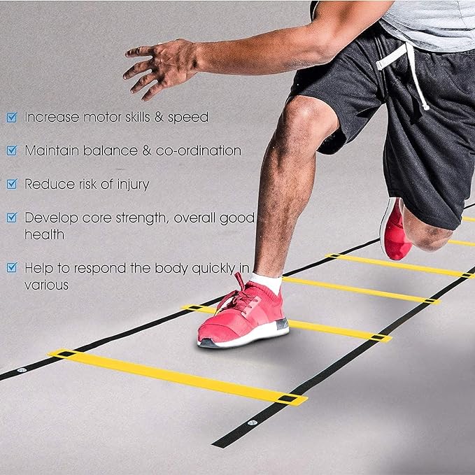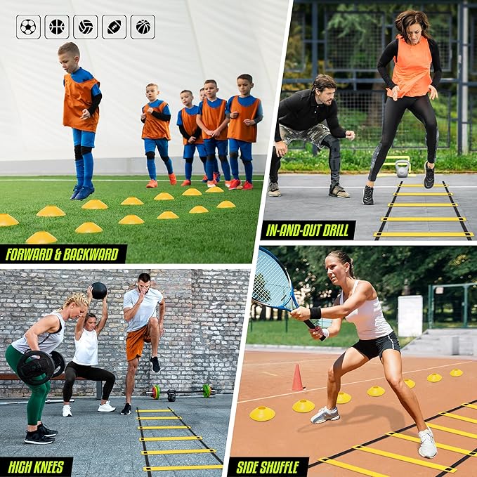 • BETTER ATHLETIC PERFORMANCE: Ideal for athletic training, football, soccer, basketball drills, hockey, lacrosse, tennis, badminton, rugby to increase acceleration, leg strength, and speed, core skills, balance, rhythm, and body control.