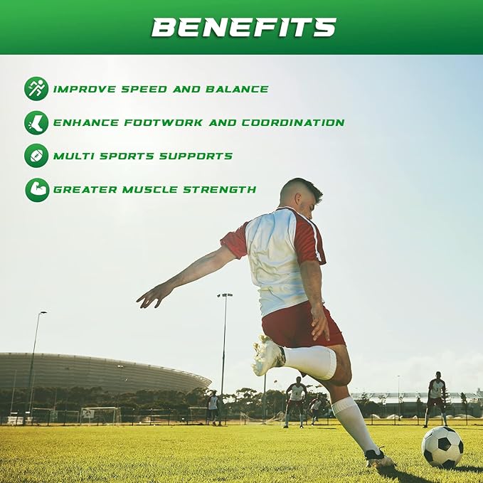 • BETTER ATHLETIC PERFORMANCE: Our agility ladder speed training equipment is perfect for athletes in a variety of sports, including soccer, football, basketball, hockey, lacrosse, tennis, and badminton. No matter what your sport or fitness level, our agility ladder speed training equipment can help you improve your performance. So why wait? Start training today and see the results for yourself.