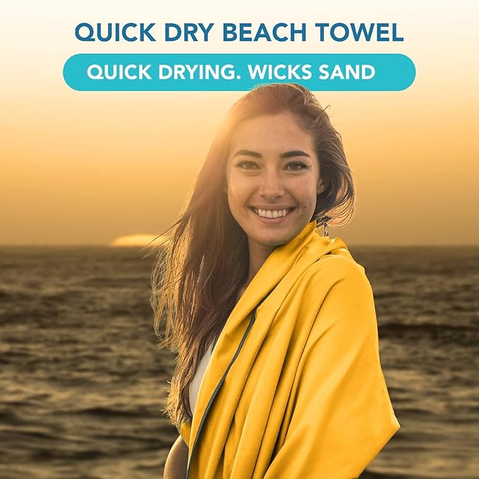 • SUPER ABSORBENT and FAST DRYING MICROFIBER: Our quick dry travel towel can hold up to five times its weight in water, making it the most functional microfiber towel for travel packing. Our microfiber towels also dry up to ten times faster than normal, terry cloth or cotton towels. They’re perfect for indoor or outdoor activities.
