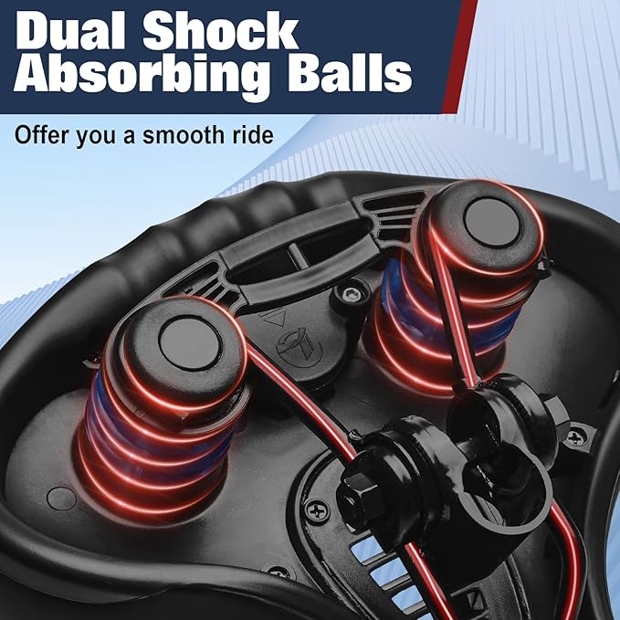 - Shock absorption: The two shock absorbing balls placed beneath the bicycle seat ensure absorbing the shocks coming from the bumps, potholes or any difficult terrain you are riding on. The bike seat features high-density memory foam padding to fit your hips perfectly. Soft and comfortable, relievie pressure on your back and buttocks. Enjoying a healthy and happy cycling trip