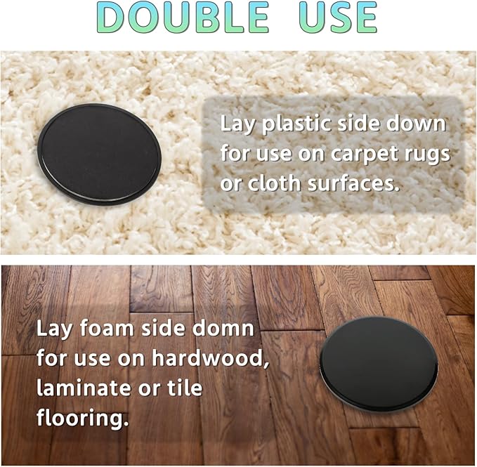 - DUAL-SIDED DESIGN: One side is made of ABS plastic - for carpets or cloth surfaces; One side is EVA foam - for hardwood, laminate or tile flooring.